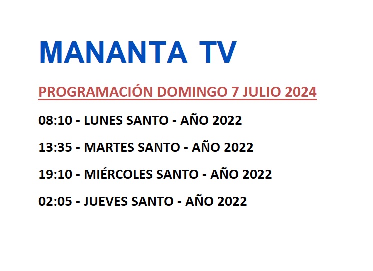 PROGRAMACIÓN en canal MANANTA TV – Domingo 7 Julio 2024