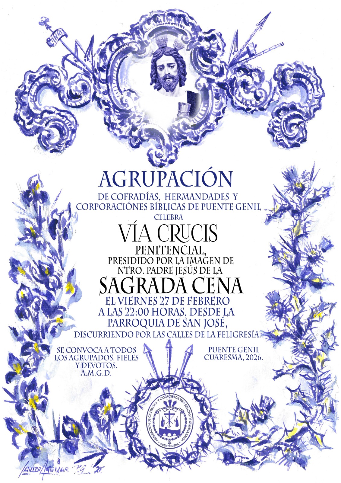 Desde la Agrupación y la hermandad de la Sagrada Cena, convocan a todos los fieles yt devotos de Puente Genil a vivir uno de lo momentos más importantes de la Cuaresma. Un momento de recogimiento, renovación espiritual y fe en Cristo.