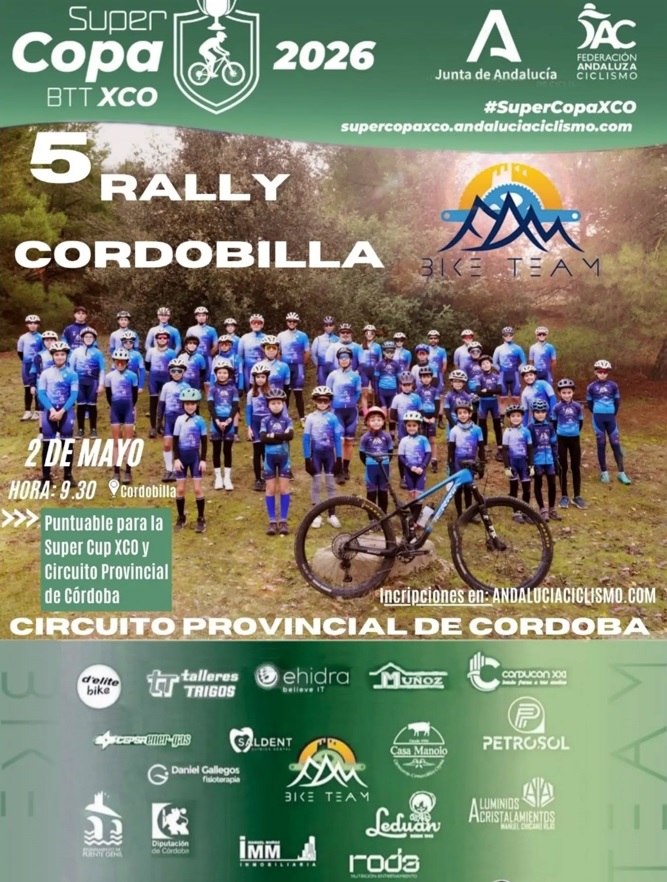 El próximo sábado 2 de mayo, Puente Genil acogerá el V Rally Córdobilla, una cita deportiva imprescindible donde se disputará una de las 5 pruebas de la Supercopa de Andalucía BTT XCO, además de ser puntuable para el campeonato provincial.