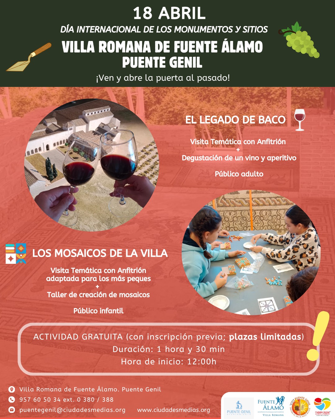 Este próximo sábado 18 de abril, con motivo del Día Internacional de los Monumentos y Sitios, Puente Genil abre una ventana única al pasado con una experiencia cultural imprescindible en la Villa Romana de Fuente Álamo