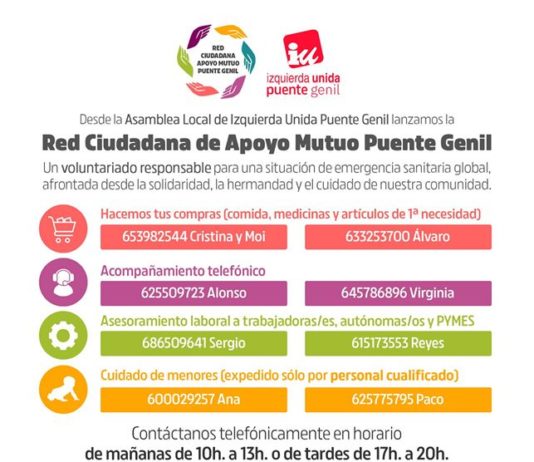 IZQUIERDA UNIDA PUENTE GENIL LANZA LA RED CIUDADANA DE APOYO MUTUO